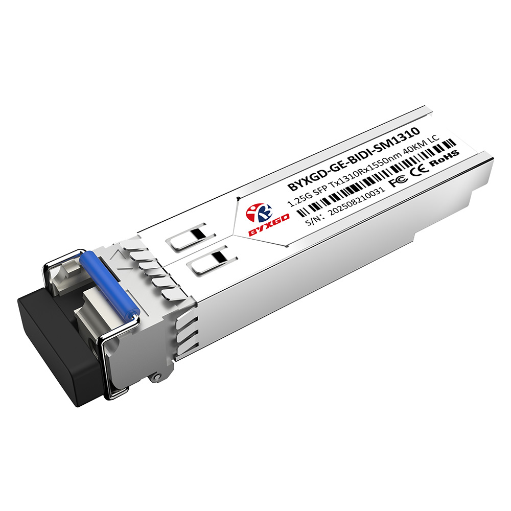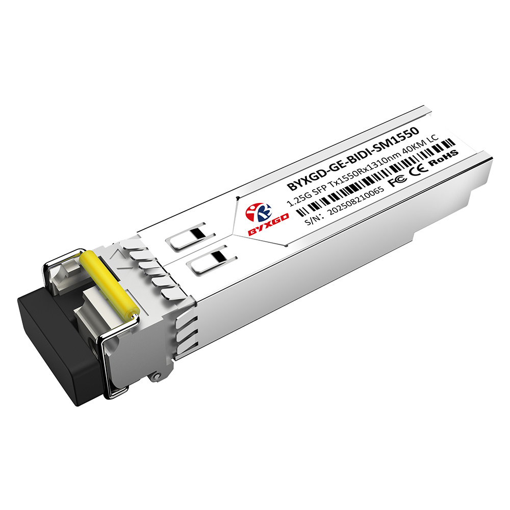 Cisco GLC-BX40-D Compatible 1000BASE-BX-D is a BiDi SFP transceiver designed for single-mode fiber, which transmits 1000BASE Ethernet over dual wavelengths of 1550 nm TX and 1310 nm RX using LC connectors. Supporting a maximum link distance of 40 km and an optical budget of about 6–8 dB, this module is ideal for long-haul data center and campus network connections. Operating at a nominal rate of 1 Gbps, with low insertion loss and a high optical budget to sustain performance in telecom workloads, the transceiver also provides Digital Optical Monitoring (DOM) for real-time diagnostics of optical power, temperature, and RX errors, improving maintenance prediction and fault diagnosis. The transceiver complies with IEEE 802.3z, RoHS, and Class 1 FDA laser safety requirements.