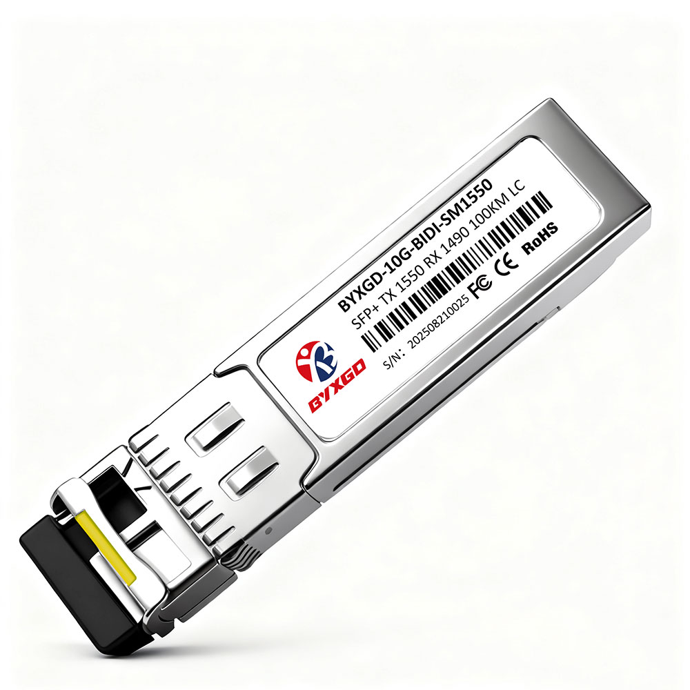 Cisco SFP-10G-BX100D Compatible 10GBASE-BX100-D SFP+ BiDi module provides the ability to transmit 10 Gbps over a single strand of fiber, which can be either single-mode fiber (SMF) or multimode fiber (MMF). This particular model utilizes a single-mode fiber (SMF) strand and Wavelength Division Multiplexing (WDM) technology, with a transmission wavelength of 1550 nm and a receiving wavelength of 1490 nm, with maximum distances of 100 km. The SFP module employs a simplex LC/UPC connector, features a cooled EML transmitter and APD receiver, and, in order to transmit and receive data utilizing a single strand of fiber, must be paired with a complementary wavelength on the far side of the link to operate multidirectionally. Data sheets emphasize low power consumption along with high-speed performance for enterprise-level and service provider networks, for applications that range from enterprise wiring closets, service provider transport applications, to Radio & Baseband Units.