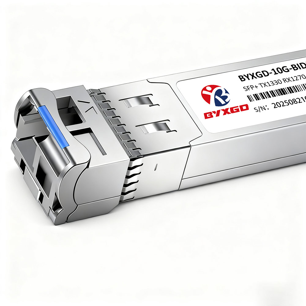 Cisco SFP-10G-BX40-D Compatible 10GBASE-BX40-D SFP+ is a cutting-edge 10G BiDi optic transceiver with a distance range of up to 40 km via OS2 SMF fiber. It uses an LC simplex connector for single-fiber transmission, transmits a 1330 nm signal, and receives on the opposite side at 1270 nm. The opposing BiDi optic transmits at 1270 nm and receives at 1330 nm, ensuring the overall operation is truly BiDi.