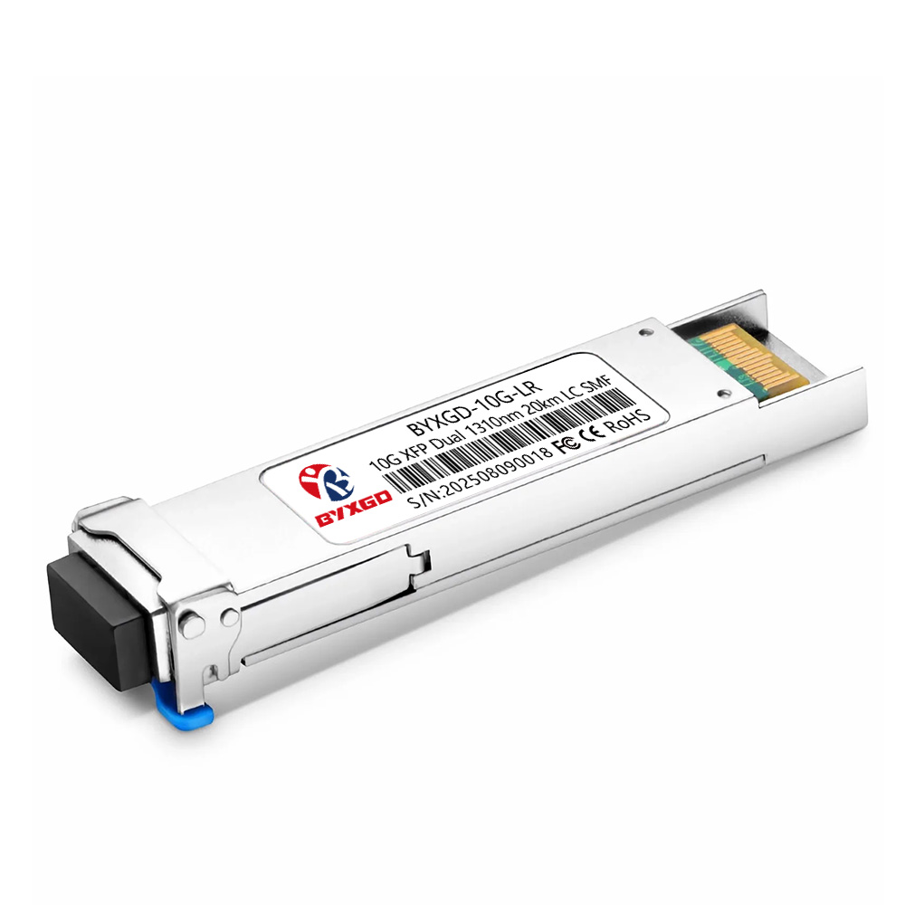 10GBASE-LR/MR XFP optical transceiver is a hot-swappable module designed to satisfy 10-gigabit long-reach applications over OS2 single-mode fiber. It operates on 9.95–11.1 Gbps line rates and is intended to support Ethernet, SONET/SDH, and Fibre Channel transport applications. The optical transceiver uses a 1310 nm DFB laser for the transmitter and a PIN receiver at the line signal. It supports up to 20 km of transmission distance, with the normal expected performance being a 12 dB link budget and BER ≤ 1×10⁻¹².
