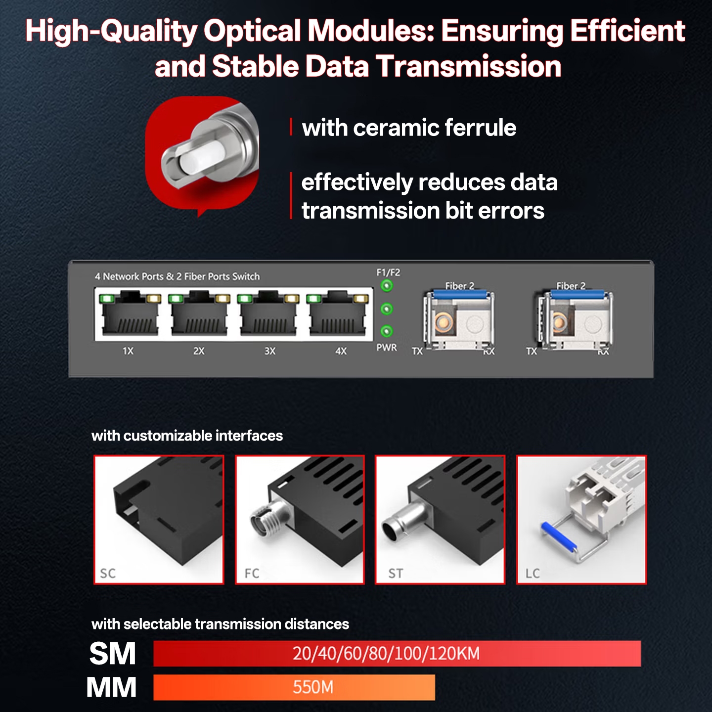 | Fiber Connector | SC/FC/LC (customizable, single/multi-mode) |
