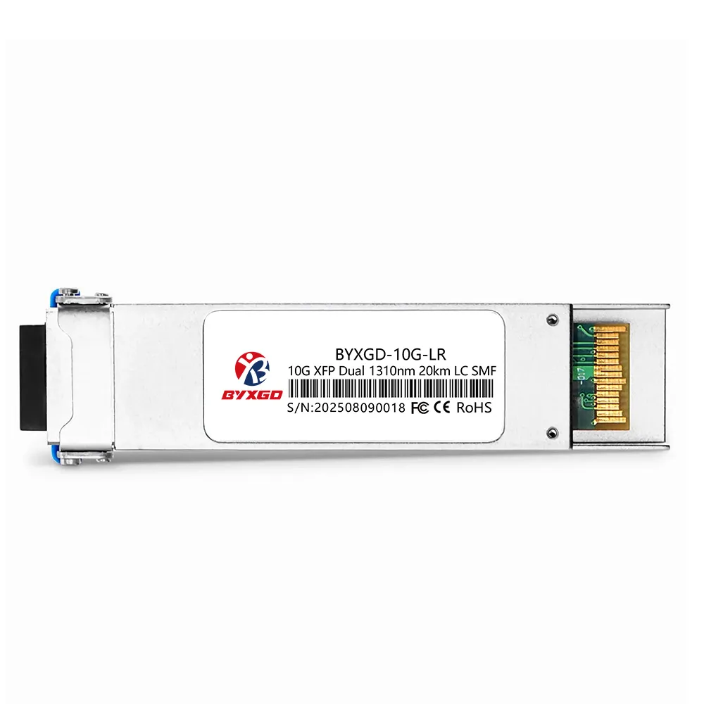 10GBASE-LR/MR XFP অপটিক্যাল ট্রান্সসিভার হল একটি হট-সোয়াপেবল মডিউল যা OS2 সিঙ্গেল-মোড ফাইবারের মাধ্যমে 10-গিগাবিট লং-রিচ অ্যাপ্লিকেশনগুলিকে সন্তুষ্ট করার জন্য ডিজাইন করা হয়েছে। এটি 9.95–11.1 Gbps লাইন রেটে কাজ করে এবং ইথারনেট, SONET/SDH এবং ফাইবার চ্যানেল ট্রান্সপোর্ট অ্যাপ্লিকেশনগুলিকে সমর্থন করার উদ্দেশ্যে তৈরি। অপটিক্যাল ট্রান্সসিভারটি ট্রান্সমিটারের জন্য 1310 nm DFB লেজার এবং লাইন সিগন্যালে একটি PIN রিসিভার ব্যবহার করে। এটি 20 কিলোমিটার পর্যন্ত ট্রান্সমিশন দূরত্ব সমর্থন করে, স্বাভাবিক প্রত্যাশিত কর্মক্ষমতা হল 12 dB লিঙ্ক বাজেট এবং BER ≤ 1×10⁻¹²।