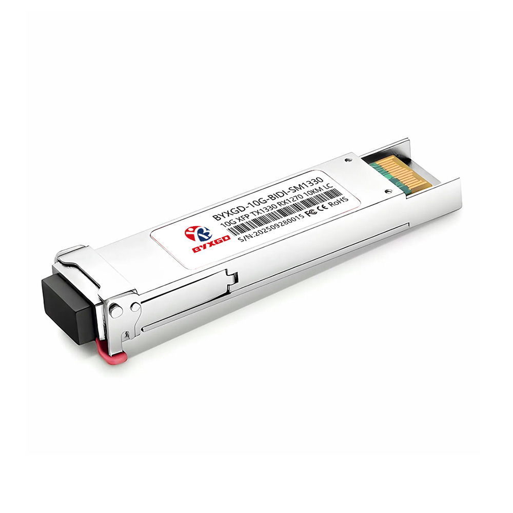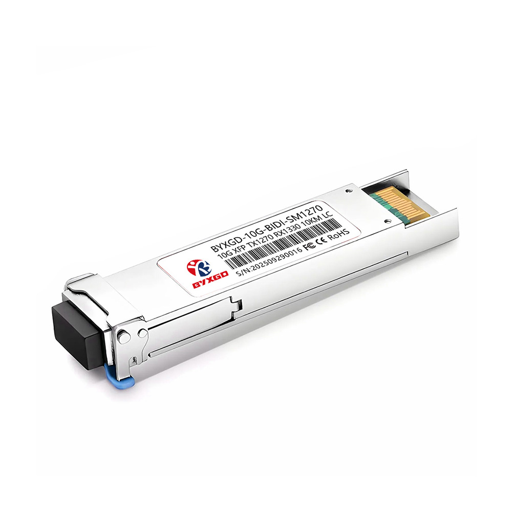 | BYXGD-XP-B23L-10D | 10G | Tx 1270 nm / Rx 1330 nm | 10 km | DFB / PIN | 1 to –7 | < –14 | LC (Simplex) | SMF | 3.3 V | 0 °C – 70 °C | 10GBASE‑BX10U/D, BiDi XFP |