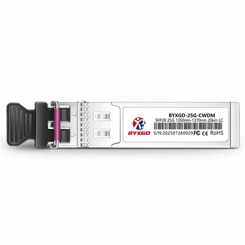A Cisco-kompatibilis SFP28 25G CWDM adó-vevő egy olyan adó-vevő modul, amely lehetővé teszi egy 25GBase-CWDM eszköz csatlakoztatását duplex LC/UPC interfészen keresztül 20 km-es távolságon belül egymódusú optikai szálon (SMF) keresztül. Az SFP28 25G CWDM adó-vevő 1350 nm és 1370 nm hullámhosszon működik, adóként CWDM DFB lézert és APD vevőként nagy érzékenységű, 25.78125 Gbps sebességű kapcsolatokat biztosítva.
