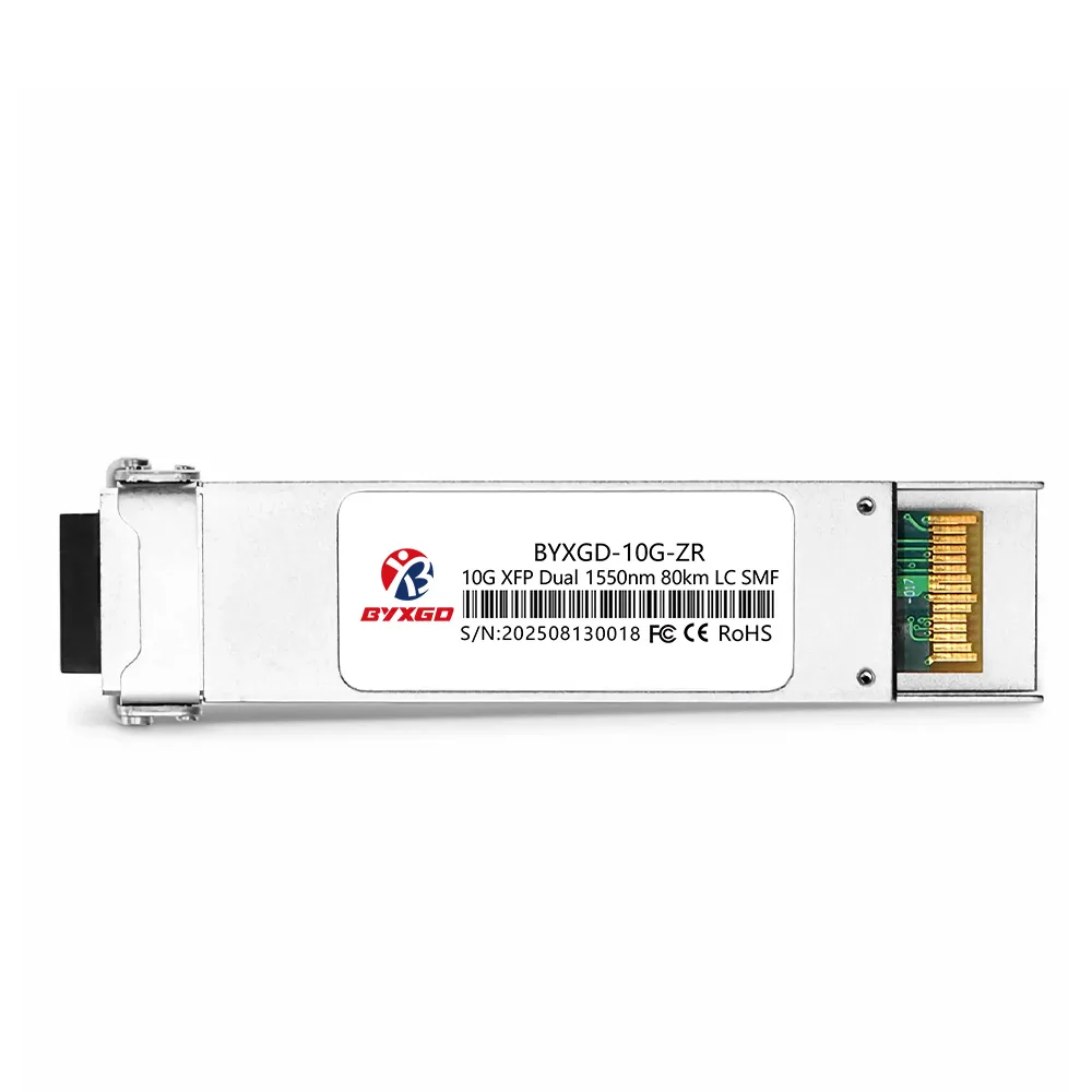 Modul yang kompatibel dengan Cisco XFP-10GZR-OC192LR mendukung 10GBASE-ZR/ZW dan OC-192/STM-64 LR-2 XFP 1550nm 80km. Modul ini dioptimalkan untuk digunakan dalam penerapan Telekomunikasi dan Pusat Data sebagai modul hot-pluggable yang mendukung 10G Ethernet, OC-192/STM-64 POS, dan 10G Fibre Channel. Modul ini beroperasi pada kecepatan 9.95–11.1 Gbps, dengan kecepatan LAN Ethernet standar 10.3125 Gbps dan WAN/OC-192 9.95328 Gbps. Pemancar EML 1550 nm dengan penerima APD memiliki antarmuka LC ganda dan OC-192/STM-64 LR-2 yang sesuai dengan ITU-T G.652, menggunakan panjang gelombang Tx 1530–1565 nm, daya Tx hingga +4 dBm, dan sensitivitas Rx hingga −24 dBm untuk mendukung sambungan jarak jauh sejauh 80 km.