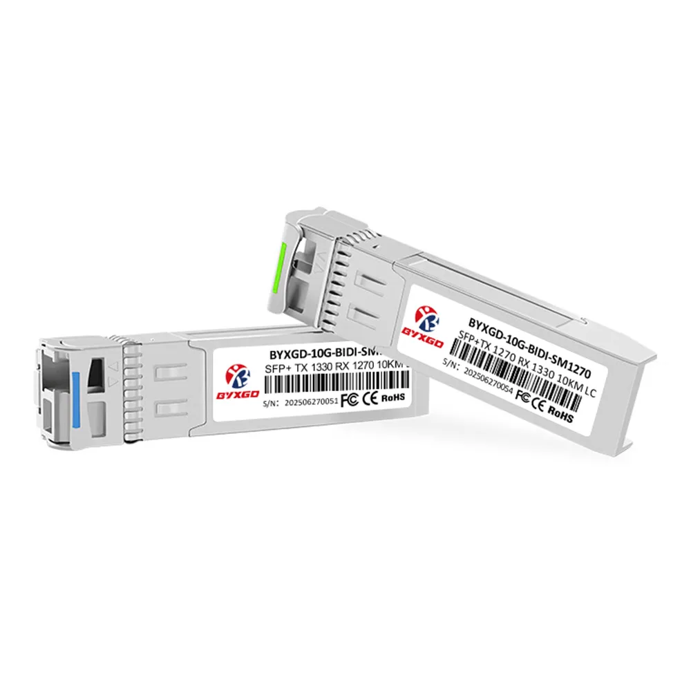 호환 브랜드 및 모델 예시: Juniper Networks: SFPP-10GE-BX10D-IT; HW: SFP-10G-BXD1; Ciena: XCVR-S10U33; Mikrotik: S+2332LC10D; Fortinet: FG-TRAN-SFP+LR. 10GBASE-BX10-D 모듈은 LC 단방향 커넥터를 사용하는 OS2 SMF 등급 광섬유를 통해 10km 링크를 지원합니다. 이 모듈은 광섬유 한 가닥을 통해 1330nm 파장을 전송하고 1270nm 파장을 수신하며, 파트너 장치는 반대 방향으로 파장을 수신합니다. 링크의 각 방향에서 보완 파장을 적절히 사용하면 전이중 BiDi 기능을 구현하고 기업 및 서비스 제공업체 네트워크에서 링크 성능 안정성을 확보할 수 있습니다.