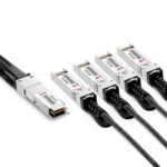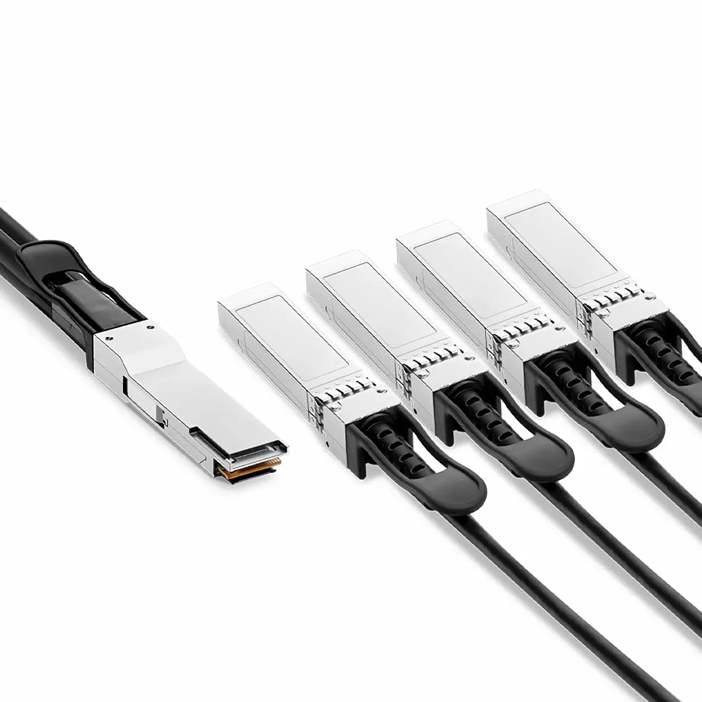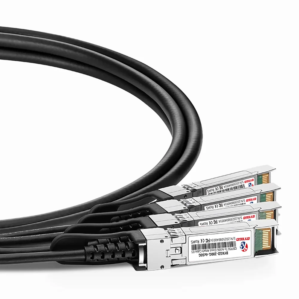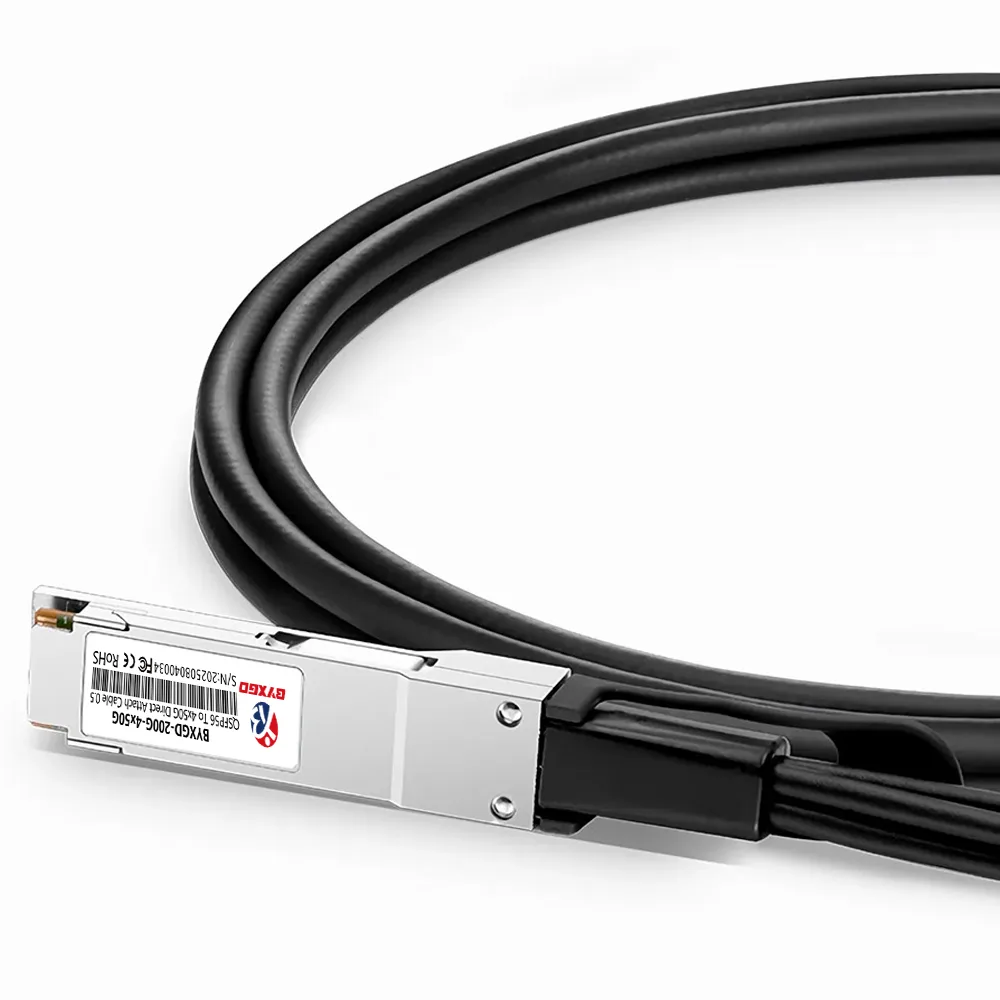 Kabel rozdzielczy Cisco QSFP-4S50-CU3M firmy BYXGD, kompatybilny z interfejsem 3M (10 stóp) 200G QSFP56 do 4x50G SFP56 PAM4 z pasywną miedzią, z bezpośrednim podłączeniem, posiada jeden interfejs 200GbE QSFP56 i cztery złącza 50GbE SFP56, umożliwiając szybkie połączenia Ethernet 200G do 4x50G na krótkich dystansach. Kabel ten składa się z 30 miedzianych przewodów AWG twinax, zamkniętych w wytrzymałej powłoce PVC i zabezpieczonych obudowami ze stopu cynku, co zapewnia mu wystarczającą wytrzymałość, aby zapobiec potencjalnym uszkodzeniom, zachowując jednocześnie integralność sygnału na duże odległości.