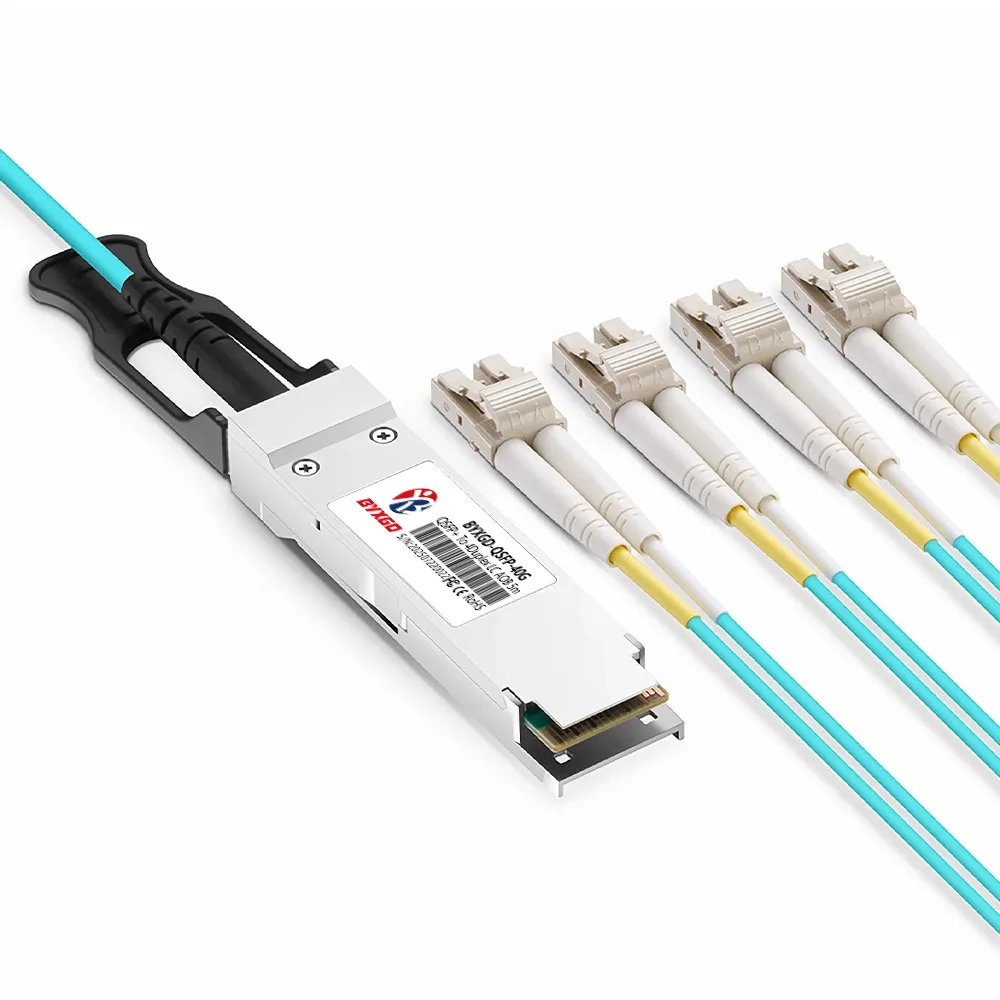O cabo de breakout óptico ativo Cisco QSFP-8LC-AOC5M de 5 m (16 pés), compatível com 40G QSFP+ para 4 LC duplex (BYXGD), está em conformidade com o padrão IEEE 802.3ba 40GBase-SR4 e foi projetado para aplicações de breakout quádruplo de 40G para 4 x 10G usando fibra multimodo OM3 em distâncias de até 100 metros.