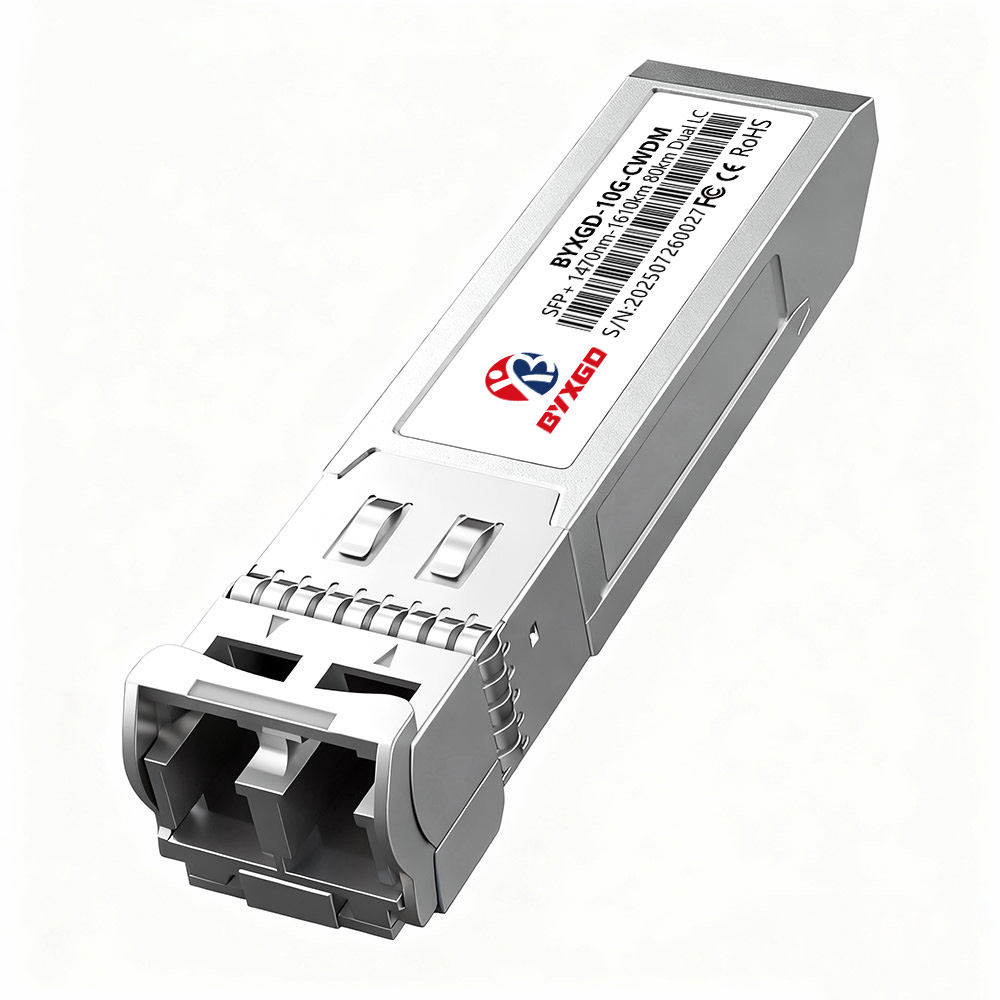 Cisco CWDM-SFP10G-1610 compatible SFP+ 10G CWDM transceiver supports a maximum transmission distance of up to 80 km (50 miles) on single-mode fiber using an LC duplex connector and can transmit at a data rate of 10 Gb/s. The optical transmitter is of the EML type, and the optical receiver uses an APD. The link budget (total channel loss and margin) of the transceiver across the 8 CWDM wavelengths (1470 nm–1610 nm) is greater than or equal to 24 dB. The transceiver is compliant with the SFF-8431/SFF-8432 Multi-Source Agreement (MSA) and IEEE 802.3ae 10GBASE-ZR/ZW specifications.