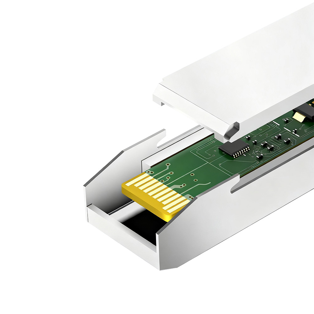The module conforms to the SFP+ Multi-Source Agreement (MSA) specification as well as SFF-8431 and SFF-8472 specifications. In addition, the module supports Digital Diagnostic Monitoring using a 2-wire I2C interface. The device operates using a single +3.3V power supply while consuming less than 1.0 W. The operating temperature range is from 0°C to +70°C, and the device has been designed with features that ensure excellent EMI performance, as well as robust ESD protection.