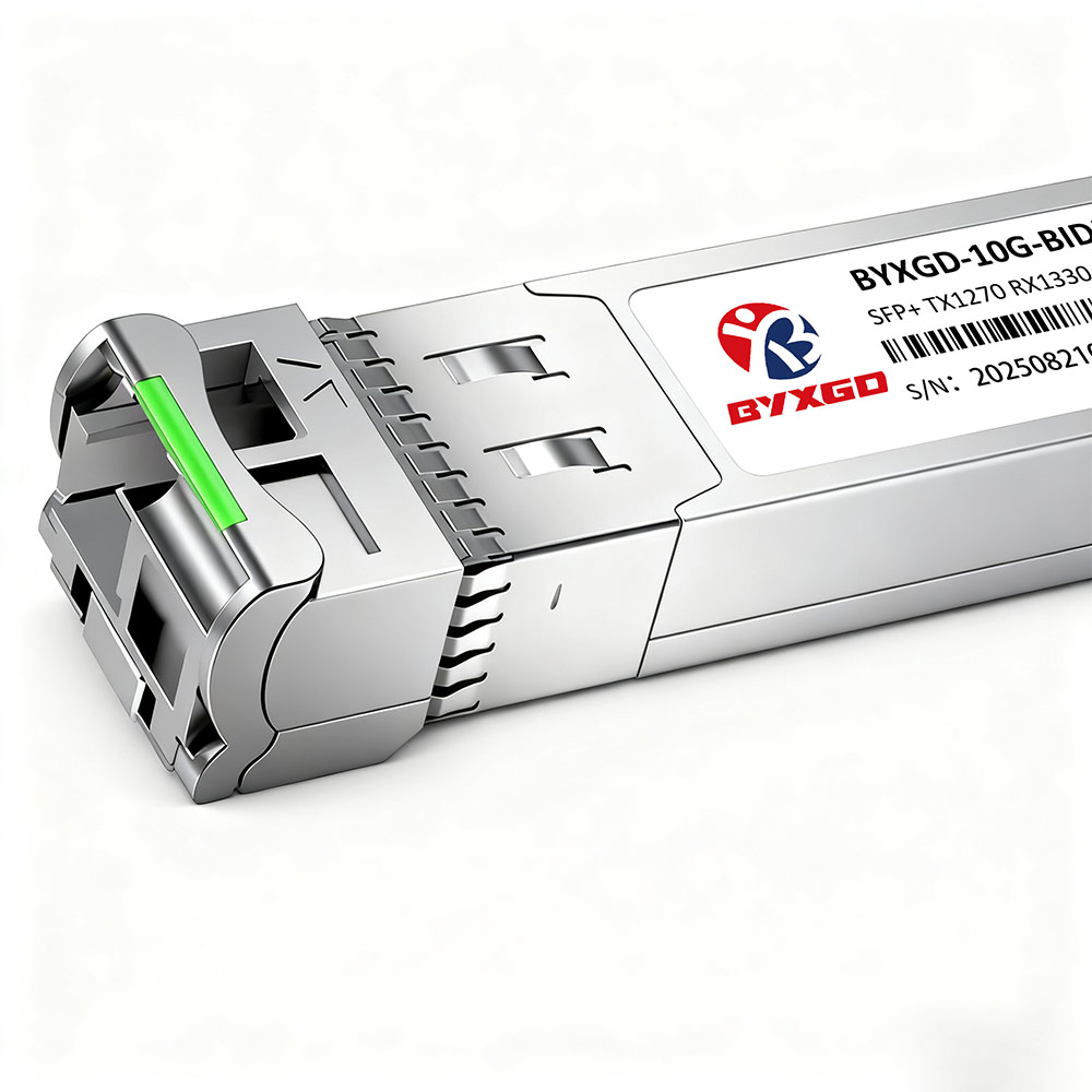 Cisco Compatible 10GBASE-BX20-U BiDi SFP+ provides a transmission speed of 10.3125 Gbps over distances up to 20 km on OS2 single-mode fiber with an LC simplex connector. It utilizes a 1270 nm DFB laser transmitter and a 1330 nm PIN receiver and supports full-duplex communication on one fiber strand. It is SFF-8431 and SFF-8472 compliant, enabling the provision of digital diagnostics via a 2-wire interface for real-time monitoring.